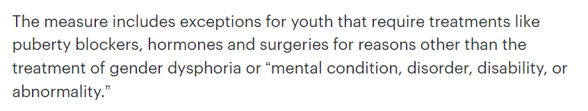 You can clearly see the fingerprints of the GOP’s vicious anti-trans smear campaign in the text of the bill. It uses the extreme sounding language of mutilation to refer to drugs like puberty blockers that are acknowledged in the text of the bill itself to be perfectly safe for all uses other than gender-affirming care.